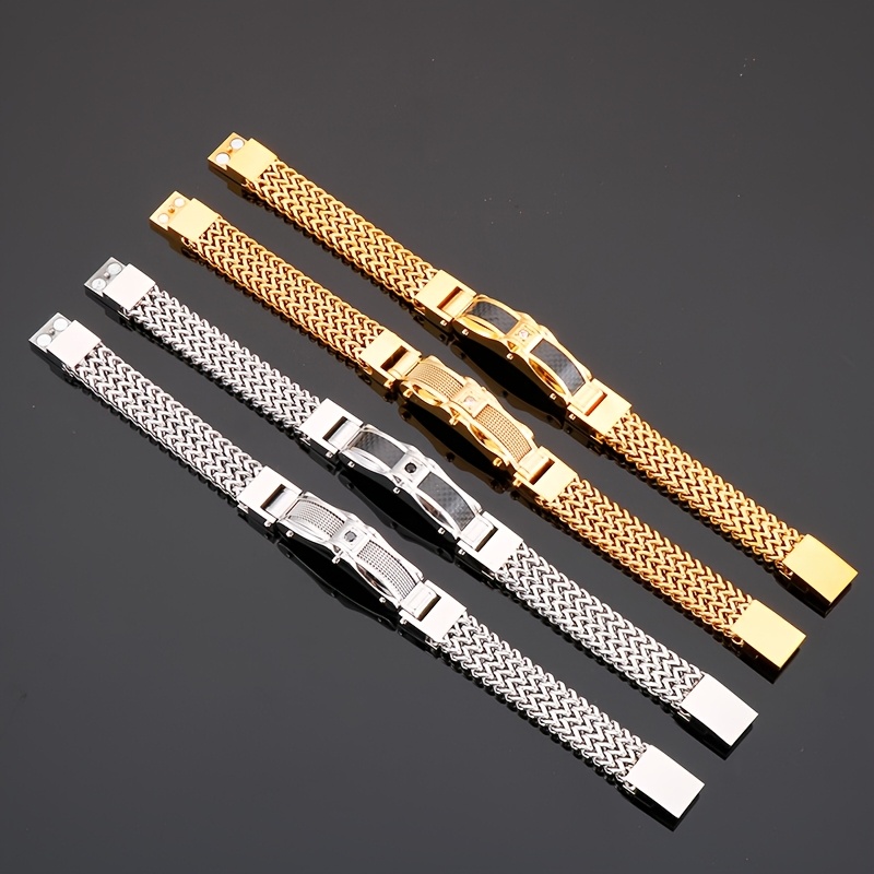 مستلزمات التجارة الإلكترونية بالجملة: أساور عصرية بتصميمات أوروبية وأمريكية، مصنوعة من الفولاذ المقاوم للصدأ 304L الذهبي، مرصعة بالمسامير، مناسبة للمراهقين