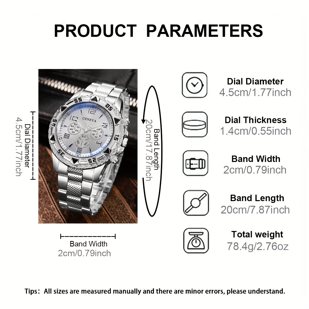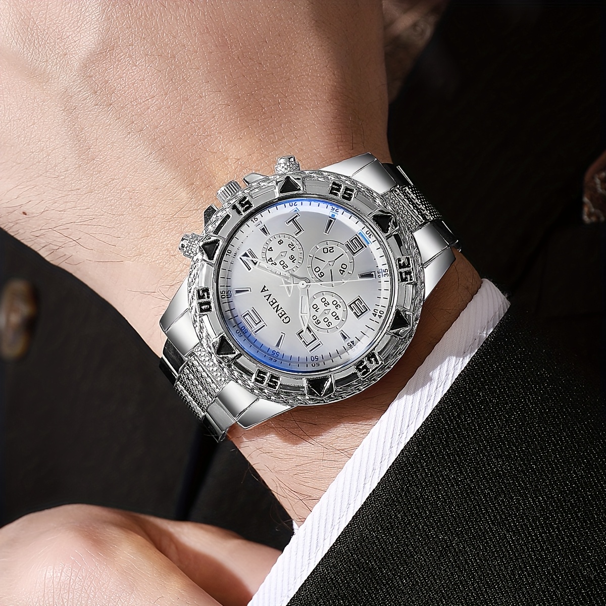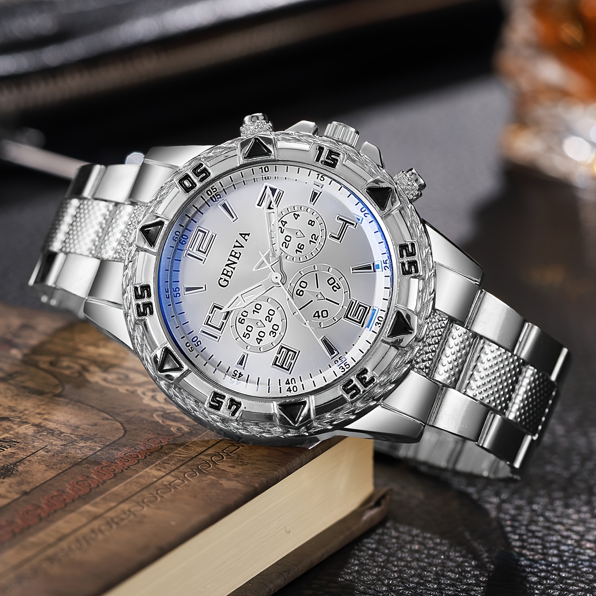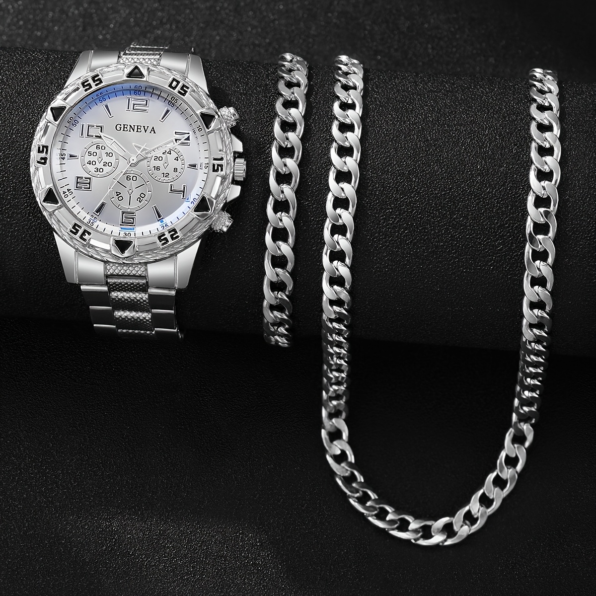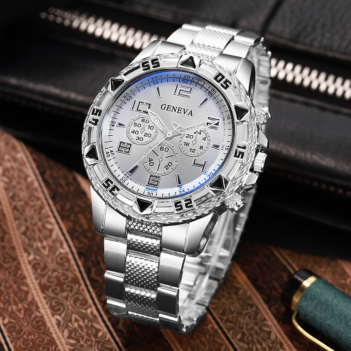 סט 3 יחידות של שעוני קוורץ אופנתיים לגברים.