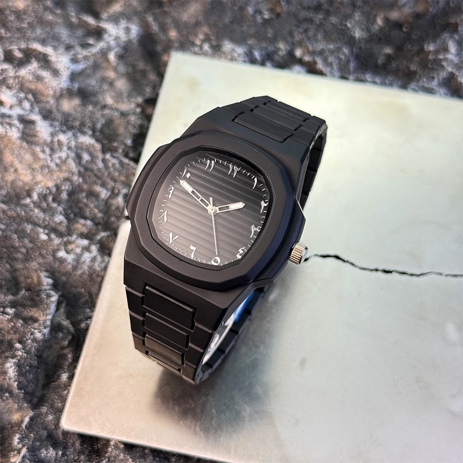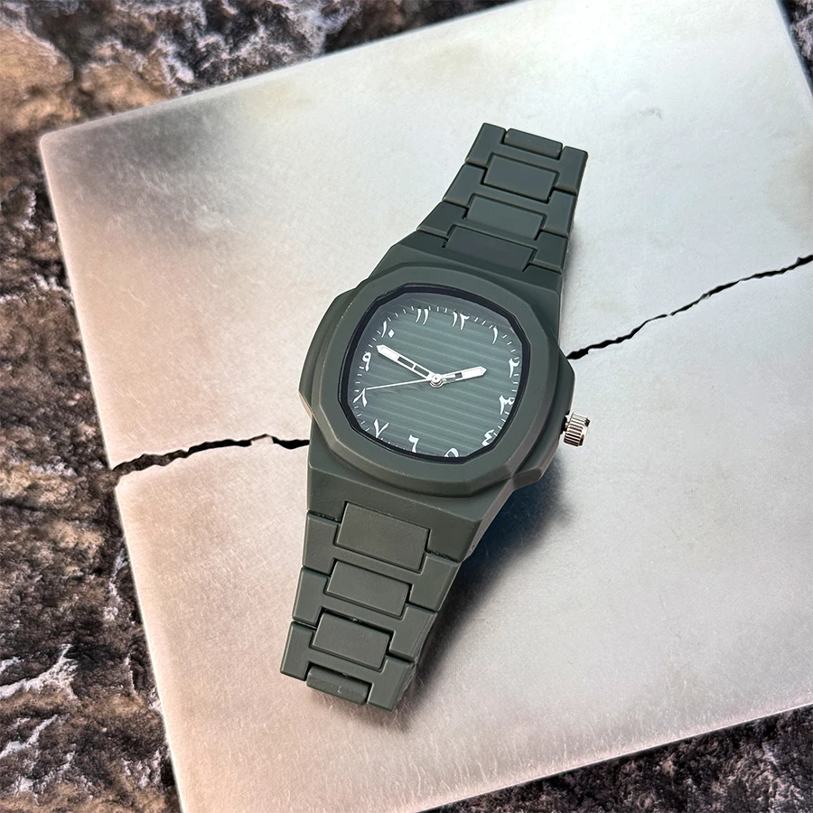 צורת המארז המרובעת מציעה טוויסט מודרני על עיצוב השעון המסורתי, ובולטת מהקהל.