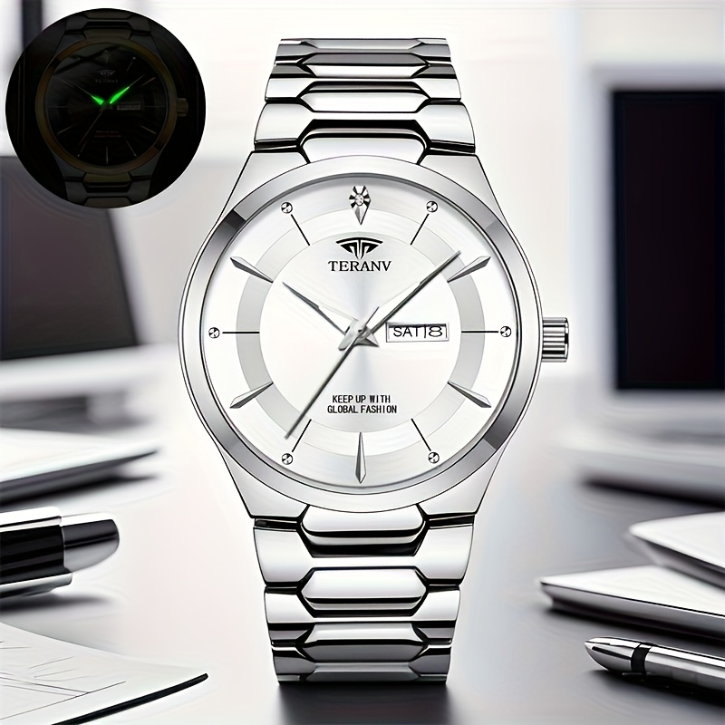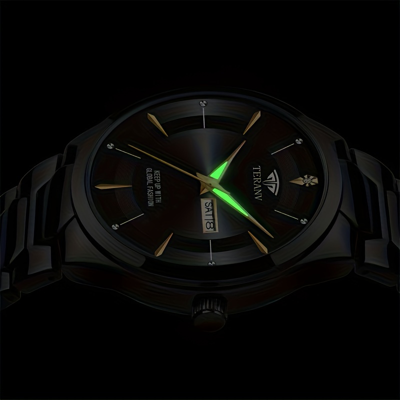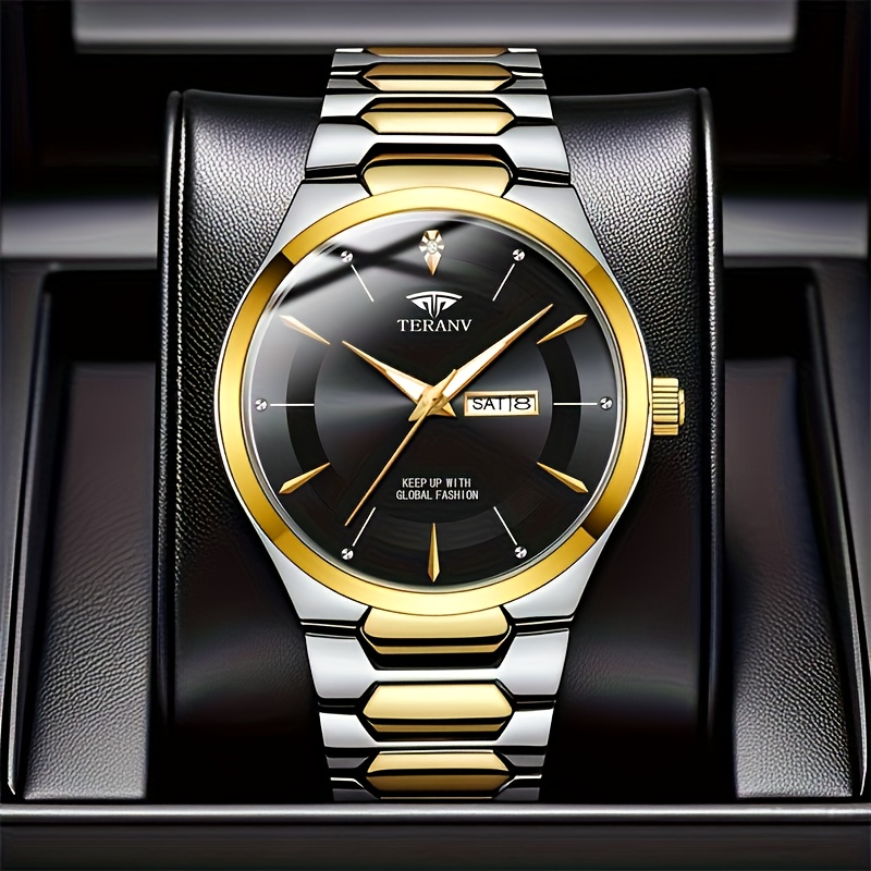 1 Men's Luxury Business Style Watch - 30m, Luminescent Analog Quartz Watch with Date/Day Display, Black & Golden Dial, Multi-Zone Time, Chronograph-Free Operation,, Ideal for Formal & Casual Attire, Ideal Gift for Men - Sleek